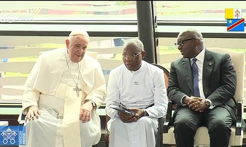 Après les honneurs à l’aéroport international de N’Djili, dans sa papamobile, le Pape François et son cortège ont pris la direction du boulevard Lumumba, puis l’avenue Sendwe, le boulevard Triomphal pour emprunter ensuite l’ex avenue du 24 novembre et déboucher au Palais de la Nation où il va rencontrer le Chef de l’Etat, Félix Tshisekedi.