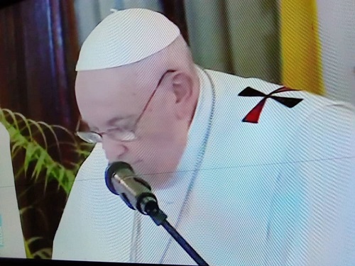Frères et sœurs, fils et filles de l’Ituri, du Nord et du Sud Kivu, je suis proche de vous, je vous étreins et je vous bénis tous. Je bénis chaque enfant, adulte, personne âgée, chaque personne blessée par la violence en République Démocratique du Congo, en particulier chaque femme et chaque mère. Et je prie pour que la femme, toute femme, soit respectée, protégée et valorisée : commettre une violence sur une femme et sur une mère, c’est la faire à Dieu lui-même, qui, d’une femme, d’une mère, a pris la condition humaine. Que Jésus, notre frère, Dieu de la réconciliation qui a planté l’arbre de vie de la croix au cœur des ténèbres du péché et de la souffrance, Dieu de l’espérance qui croit en vous, en votre pays et en votre avenir, qu’il vous bénisse et vous console. Qu’il répande sa paix dans vos cœurs, dans vos familles et dans toute la République Démocratique du Congo.