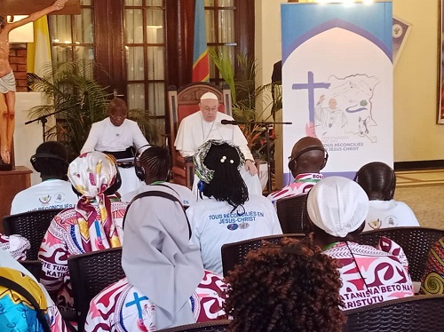 Frères et sœurs qui aimez ce pays et vous consacrez à son peuple, ce que vous faites est merveilleux mais n'est en rien facile. On pleure lorsque l'on entend des histoires, comme celles que vous m'avez racontées, de personnes souffrantes condamnées par l'indifférence générale à une vie errante, qui les conduit à vivre dans la rue, les exposant aux risques de violences physiques et d'abus sexuels, et même à l'accusation de sorcellerie, alors qu'elles n'ont besoin que d'amour et de soins. Tekadio, j'ai été touché par ce que tu nous as dit : à cause de la lèpre, tu te sens, encore aujourd'hui en 2023, « discriminé, regardé avec mépris et