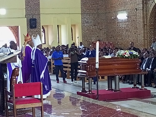 La messe des funérailles a été célébrée par son Excellence Monseigneur José Moko, Évêque du Diocèse d’Idiofa et Vice- Président de la CENCO et concélébrée par leurs Excellences Mgr Jean-Pierre Kwambamba, Evêque de Kenge, Mgr Timothée Bodika, Evêque de Kikwit, Mgr Marie Bernard Fansaka, Evêque de Popokabaka, Mgr Carlos Ndaka, Evêque auxiliaire de Kinshasa, Mgr Donatien Nshole, le Secrétaire général de la CENCO, et plus ou moins 156 prêtres.