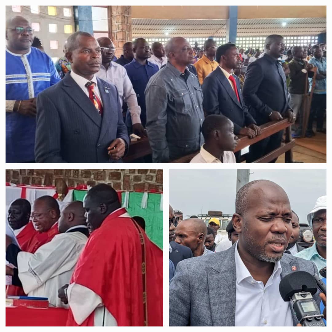 Dans le cadre de son attachement profond à la communauté catholique du Diocèse de Wamba, le Gouvernement Provincial du Haut-Uélé, au nom du Gouverneur de province, 𝐥'𝐇𝐨𝐧𝐨𝐫𝐚𝐛𝐥𝐞 𝐉𝐞𝐚𝐧 𝐁𝐀𝐊𝐎𝐌𝐈𝐓𝐎 𝐆𝐀𝐌𝐁𝐔, a dépêché trois ministres pour prendre part à la grande messe présidée par le 𝐂𝐚𝐫𝐝𝐢𝐧𝐚𝐥 𝐅𝐫𝐢𝐝𝐨𝐥𝐢𝐧 𝐀𝐌𝐁𝐎𝐍𝐆𝐎 ce vendredi 17 octobre en la cathédrale saint Joseph de Wamba. Prenant la parole au nom du Gouverneur, le Ministre des Finances, 𝐄𝐱𝐜𝐞𝐥𝐥𝐞𝐧𝐜𝐞 𝐉𝐚𝐜𝐪𝐮𝐞𝐬 𝐀𝐍𝐙𝐀𝐓𝐄𝐏𝐄𝐃𝐀𝐍𝐆𝐀, a d’abord exprimé la gratitude du Gouvernement Provincial envers les fidèles catholiques et l’ensemble de la population pour l’accueil chaleureux réservé au cardinal Fridolin ambongo. Il a ensuite fait part de la vive préoccupation du Gouvernement Provincial face à la crise qui secoue actuellement le Diocèse de Wamba, appelant toutes les parties à privilégier le dialogue et la recherche d’une solution durable afin de permettre au diocèse de retrouver son bon fonctionnement.
