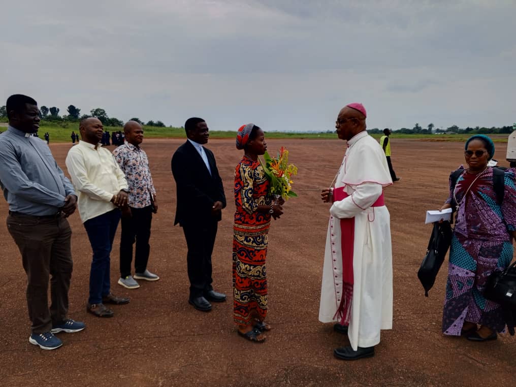 Les fidèles du diocese de Budjala ont accuilli avec joie leur Administrateur Apostolique le samedi 01 novembre à 9h45 de Gemena. A sa descente de l’avion à Gemena, Mgr José-Bernard Likolo, éveque de Lisala et Administrateur Apostolique de Budjala était accuilli par la délégation conduite par monsieur l’Abbé Jean Baptiste Magbia, délégué pontifical de Budjala. Le cortège s’est ensuite dirigé à la résidence de Mgr Philibert Tembo, l’actuel évêque de Budjala. Ce dernier a souhaité la bienvenue à son collègue et ils ont eu 3 heures d’entretien privé. Apres midi le cortège composé des prêtres et des laîcs a repris la route de Budjala. A Budjala les prêtres, les religieux et religieuses, les laics ont accuilli l’Administrateur Apostolique avec chants et danses. Le dimanche 02 novembre, Mgr José-Bernard a célébré la messe dans la cathédrale Notre Dame de Budjala bondée des fidèles. Dans son message, il a parlé de sa mission au diocèse de Budjala qui consiste à travailler à aider le diocèse de Budjala à retouver sa bonne image. Mais pour redonner cette image au diocèse, l’administrateur Apostolique a invité les prêtres, les religieux et religieuses et les fidèles laîcs à l’aider pour que lui à son tour aide le diocèse. Pour cela il a besoin d’une ouverture sincère de tous les fidèles, d’une bonne collaboration qui mette à l’avant plan les valeurs de l’Eglise et surtout en respectant les vertus dont Jésus a parlé dans les béatitudes en cette solennité de tous les saints.