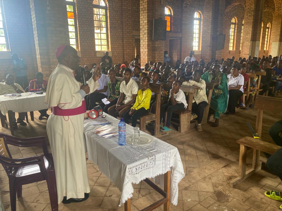 Avec une immense joie, le 23 Novembre 2025 dans le doyenné de Tshibala situé à 100 km du centre du diocèse de Luiza, S. E. Mgr Félicien Mwanama, pasteur dudit diocèse a célébré avec faste les Journées diocésaines des jeunes et des enfants. Cette dernière était précédée par plusieurs activités organisées par les jeunes du doyenné de Tshibala réunis autour de leur pasteur. Il s'agit notamment des échanges et enseignements ayant pour thème : « Vous aussi vous me rendrez témoignage en respectant la dignité de la femme ». Les enseignements reçus traversaient en long et en large le Message du saint père Léon, qui trouvait déjà ses échos dans la Lettre Pastorale de l’Evêque sous le titre de « Main dans la main pour la dignité de la femme ».