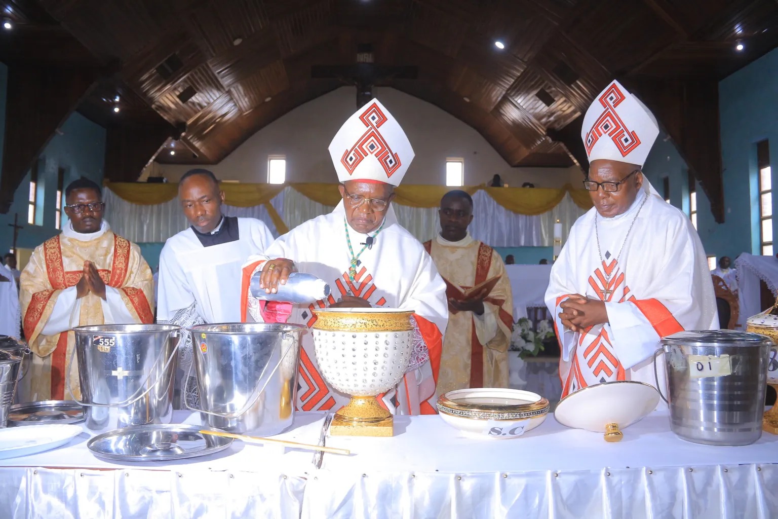 La messe chrismale, liée au renouvellement des engagements des prêtres, a eu lieu en la paroisse Mater Ecclesiae de la Cathédrale, ce mardi 31 mars 2026. L’Eucharistie a été présidée par l’évêque de Butembo-Beni, Monseigneur Sikuli Palulu Melchisédech, et concélébrée par l’évêque émérite de Wamba, Monseigneur Janvier Kataka Luvethe. Plus de 200 prêtres et plusieurs diacres étaient également présents à cette célébration. Le célébrant a invité les chrétiens à capitaliser leurs sacrements à l’intérêt des nécessiteux. Dans son homélie, l’ordinaire du lieu a montré que la consécration veut dire se sacrifier pour les autres. L’évêque a donc invité les chrétiens à toujours prier pour leurs prêtres. “C’est pourquoi il faut prier pour vos prêtres. Les consacrés existent pas pour eux-mêmes mais plutôt pour les autres, surtout les nécessités”, a exhorté l’ordinaire du lieu.