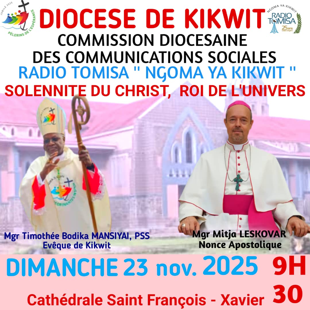 Par ailleurs, ce vendredi, 21 novembre, l’évêque de Molegbe se rendra à Bobito, où il ordonnera pour la toute première fois, en sa qualité d'Evêque de Molegbe, ce dimanche 23 novembre courant, 2 diacres et 3 prêtres pour le compte du diocèse de Molegbe. Il célébrera, à l'occasion, la Journée Diocésaine des Jeunes avec ceux de la partie Sud du Diocèse.